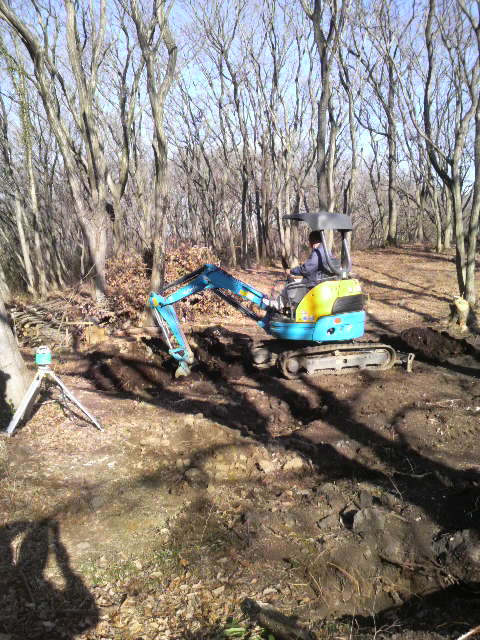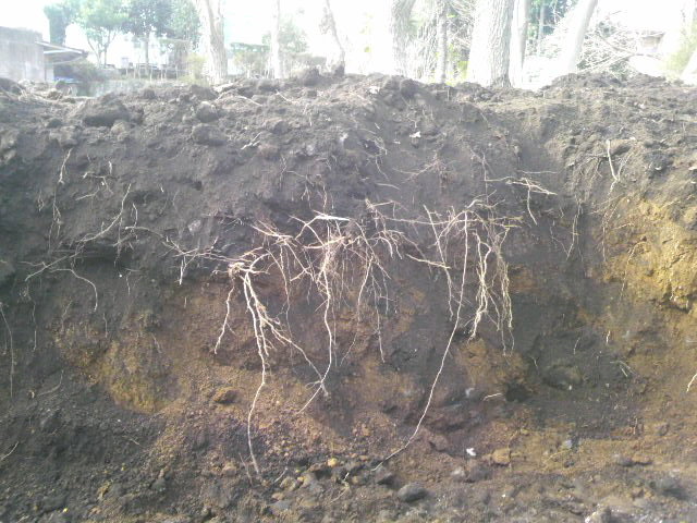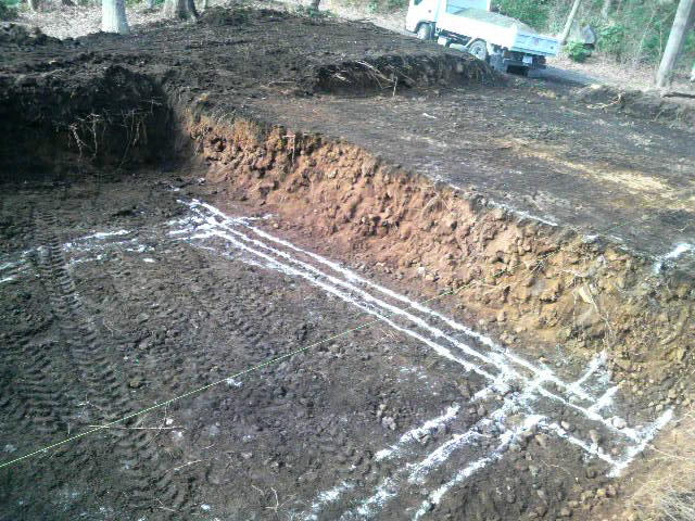 黒い土が腐葉土、その下の黄色い土が出てくると理想的な地耐力が得られる。さらに掘り下げると岩盤にぶつかる、これが伊豆高原で多く見られる地盤のようです。