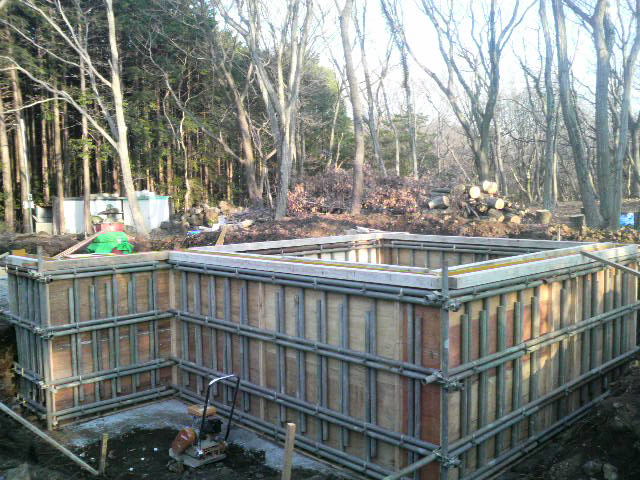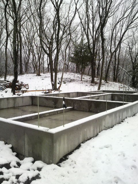 去年の暮れから基礎工事が始まり、今日基礎工事が完了しました。