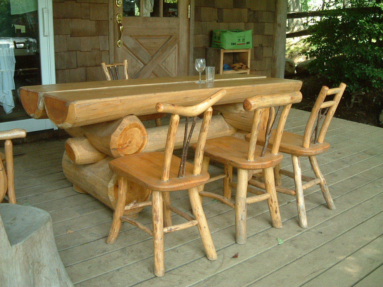 ↑こちら以前につくりましたハンドメイドの椅子とテーブル。(伊豆の国市の☆スターヒルズ☆にて) 木の自然な姿をそのまま表現しながら他に一つとない作品に完成!!ホームぺージアドレス www.little-sunset.com