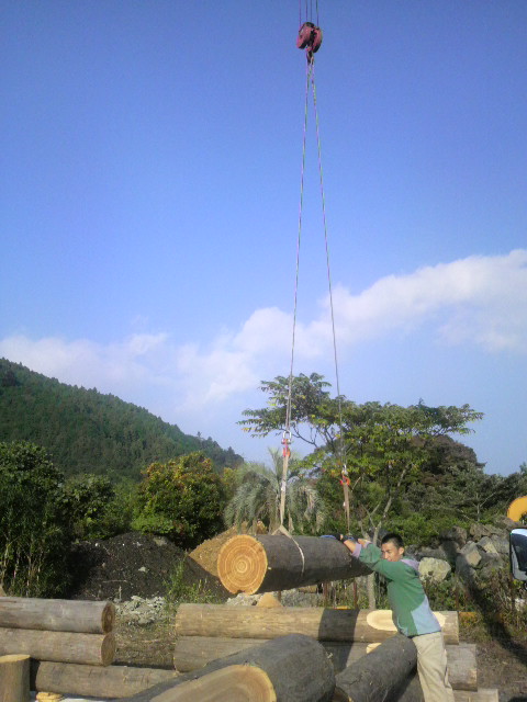 看板が出来上がりました!! この看板、木の部分はもちろん自作ですが、ターポリンシートの印刷は埼玉で看板制作の仕事をされている菅谷さんが作ってくれたもの。実はこの菅谷さん!伊豆の城ヶ崎で奥さんと二人でマシンカットのログハウスをセルフビルドしているんです!!シルログ(一段目のログ材)を積んでいる時にたまたま知り合い、いろんな業者さんを紹介したり、相談にのった事のお礼にということで作ってくれました。自作のクレーンでログを積んだり、現場のあちこちに工夫のあとが見られ、発想と実行力そして根気、本当にすごいご夫婦です!あと一息で完成です!怪我のないようにがんばってください!!
