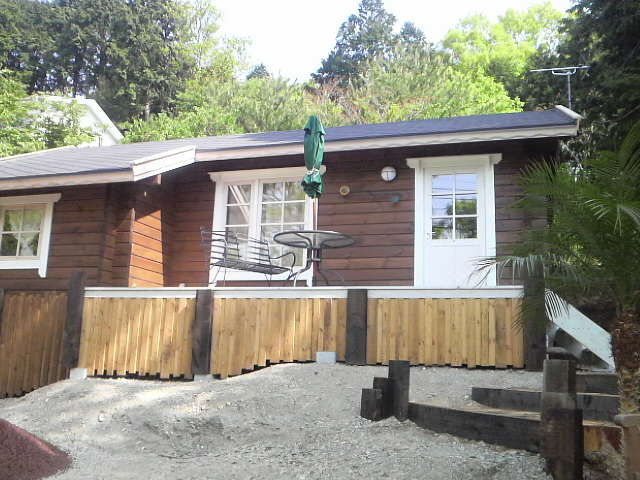 こちらは韮山のエメラルドタウンに建築したN邸、平屋のマシンカットログハウス。平屋はおちつきますね!施主さんの選んだ外壁のカラーもセンスがいいですね!