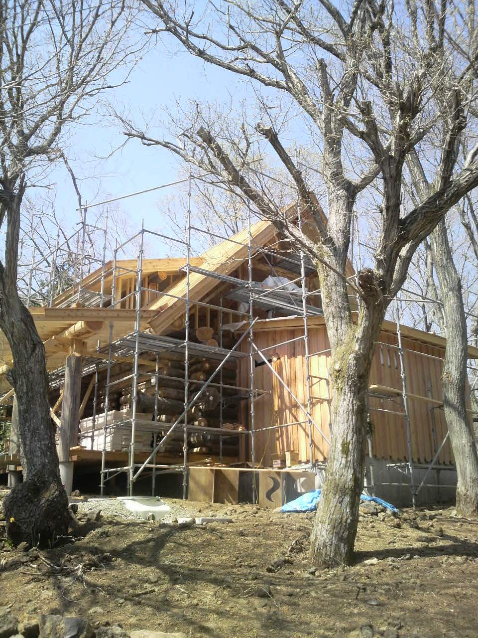 分かりづらいと思いますが垂木を掛けているところです。足場はいつもお世話になっている佐野工さんにお願いしました。いつもありがとう!